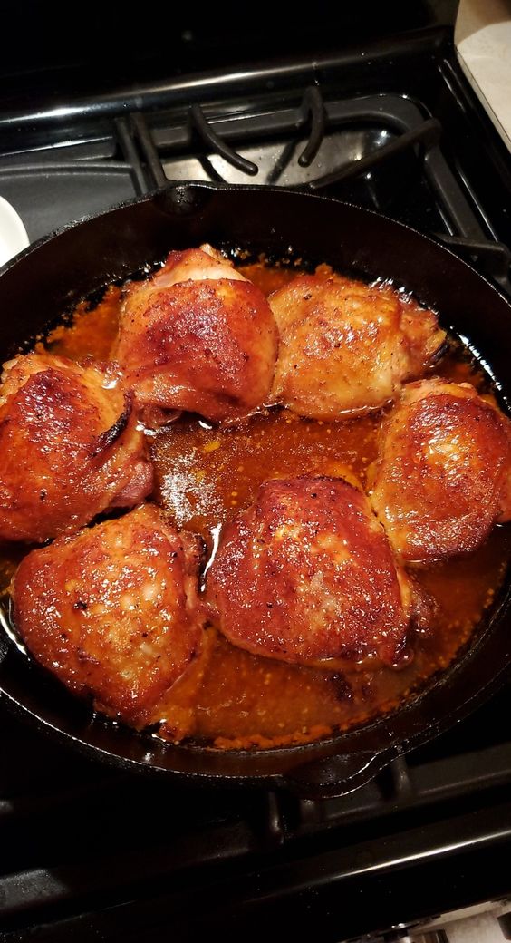 Pour the marinade into the skillet. Place the skillet, uncovered, in the oven and bake at 325° F for 1 hour, basting chicken pieces 3-4 times during the hour.